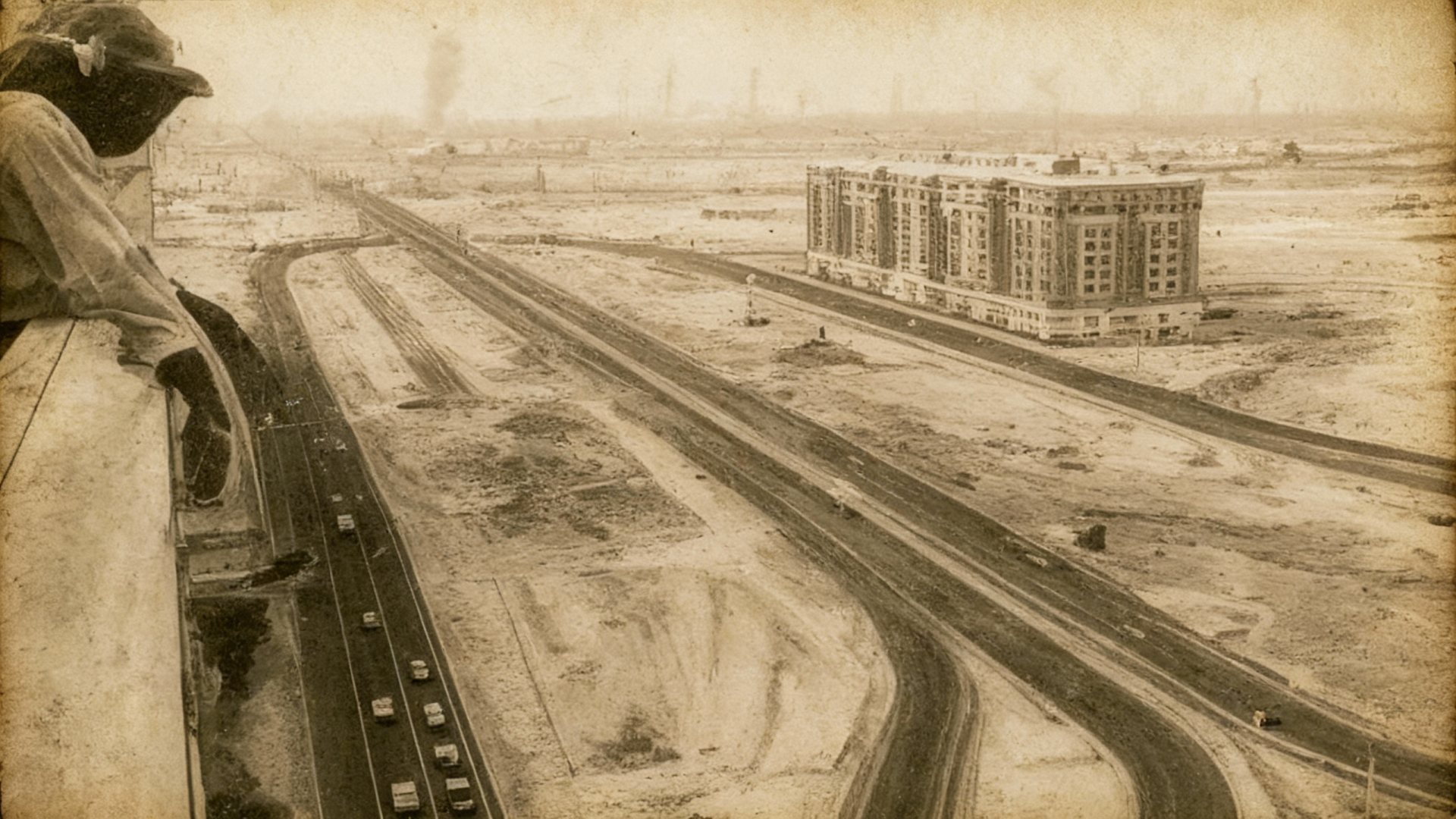 Sheikh Zayed Road, as we know it today, didn’t exist. Back then, it was called Defence Road, just a quiet, two-lane stretch of asphalt running through the desert. No high-rises, no fancy interchanges. Just open land, a few scattered buildings, and the occasional car kicking up dust as it made its way toward the city